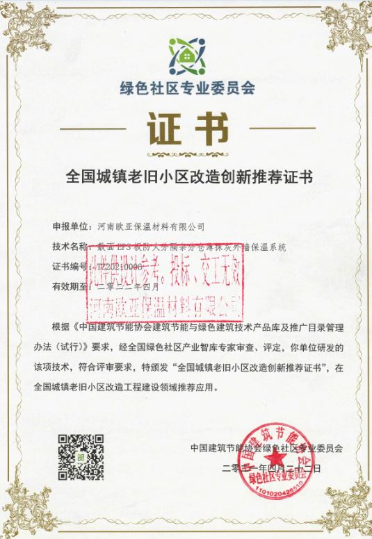 2021年被列為“全國城鎮(zhèn)老舊小區(qū)改造創(chuàng)新推薦技術(shù)企業(yè)”,并頒發(fā)證書(全國首批推薦16個(gè)企業(yè))
